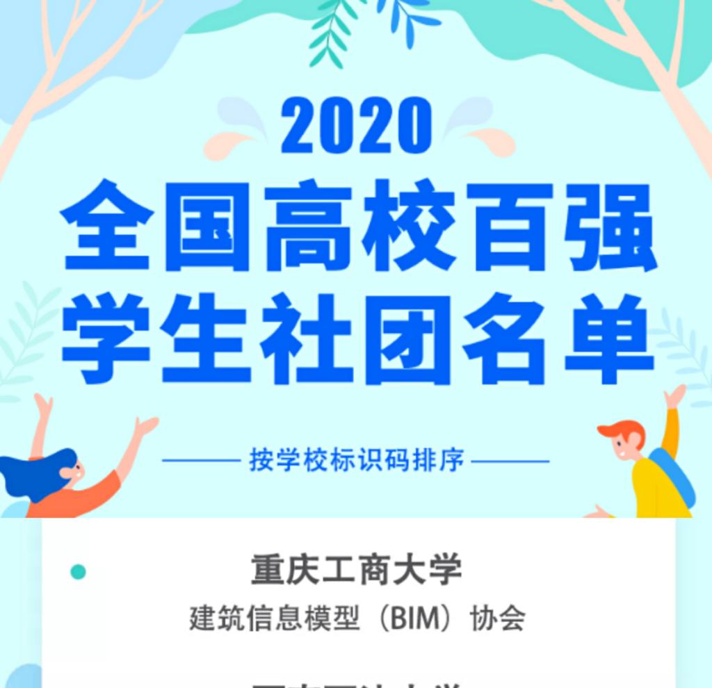 经过高校推荐、网络展示及投票、技术筛查、专家评审等环节,2020全国高校百强学生社团名单于6月15日正式公示。我校工程管理专业BIM协会成功入选全国高校百强学生社团名单。本次评比由全国学联秘书处指导、中国青年报社主办。旨在向全国范围内通过新媒体方式集中展现高校学生社团的青春活力,体现大学生社团建设成果,引导和推动大学生社团工作创新和规范化管理。乐动网页版_乐动(中国)BIM协会成立于2016年,由校团委和管理科学与工程学院...