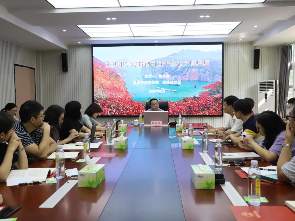 宣讲中,徐久清指出生态文明是关乎中华民族永续发展的根本大计,是党中央高度关注和强调的“国之大者”。他认为习近平生态文明思想具有时代性、科学性、开创性、坚定性、革命性等特征,是内涵丰富、体系完备的科学理论体系。他阐释了习近平生态文明思想指导下的美丽中国建设的成绩,分析了我国生态文明建设从认识到实践战略部署更加有力、在治理体系更加成熟、在追责问责更加严格、在生态环境质量持续改善,发生了历史性、转折性、全局性的变化。徐久清处长以具体的案例分析了习近平生态文明思想引领下的重庆行动,表现在重庆坚持对标对表,谋划和推进全市生态文明建设;加快建设山清水秀美丽之地;在长江经济带绿色发展中发挥示范作用;坚持系统治理,不断提升生态治理水平;坚持绿色发展,推动经济社会全面绿色转型;坚持深化改革,建立健全生态文明制度体系等。他还分析了当前我国、重庆市生态文明建设形势、主要目标、重点任务,强调我们要持续深入践行习近平生态文明思想,奋力谱写山清水秀美丽之地建设新篇章。