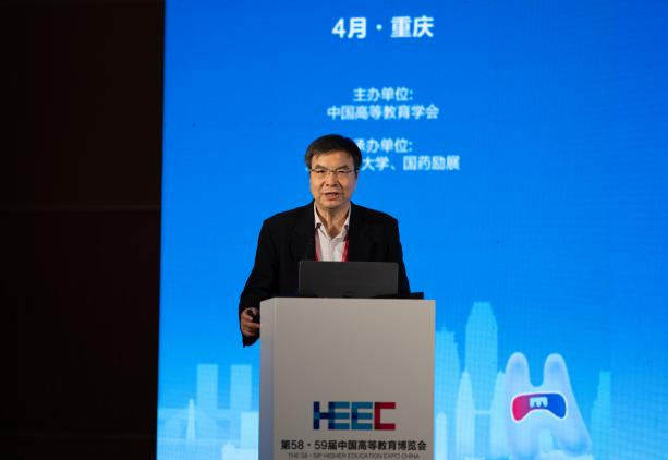 4月8日,作为第58·59届中国高等教育博览会的主论坛之一,新文科建设理论与实践论坛在重庆悦来国际会展中心顺利召开。中国高等教育学会副会长、厦门大学校务委员会副主任邬大光教授,教育部新文科建设工作组组长、山东大学原校长樊丽明教授,教育部新文科建设工作组副组长、教育部高校物流类专业教学指导委员会主任、上海海事大学原校长黄有方教授,教育部经济与贸易类教指委主任委员、对外经济贸易大学党委副书记、校长赵忠秀教授,国务院学位委员会工商管理学科评议组成员、教育部工商管理类专业教指委委员、浙江工商大学党委副书记、校长王永贵教授,吉林财经大学党委书记孙杰光教授,教育部工商管理类专业教学指导委员会委员、乐动网页版_乐动(中国)原校长孙芳城教授,教育部金融类专业教学指导委员会秘书长、中央财经大学党委常委、副校长李建军教授,国务院学位委员会工商管理学科评议组成员、东北财经大学党委常委、副校长汪旭晖教授,四川外国语大学党委常委、副校长严功军教授等200余人参加会议。大会以新文科与教育数字化为主题,聚焦教育数字化背景下的新文科人才培养模式改革,展开了深入探讨。论坛开幕式及上午阶段的主题报告由乐动网页版_乐动(中国)党委常委、副校长李敬教授主持;下午阶段的主题报告由渭南师范大学校长张守华教授主持。