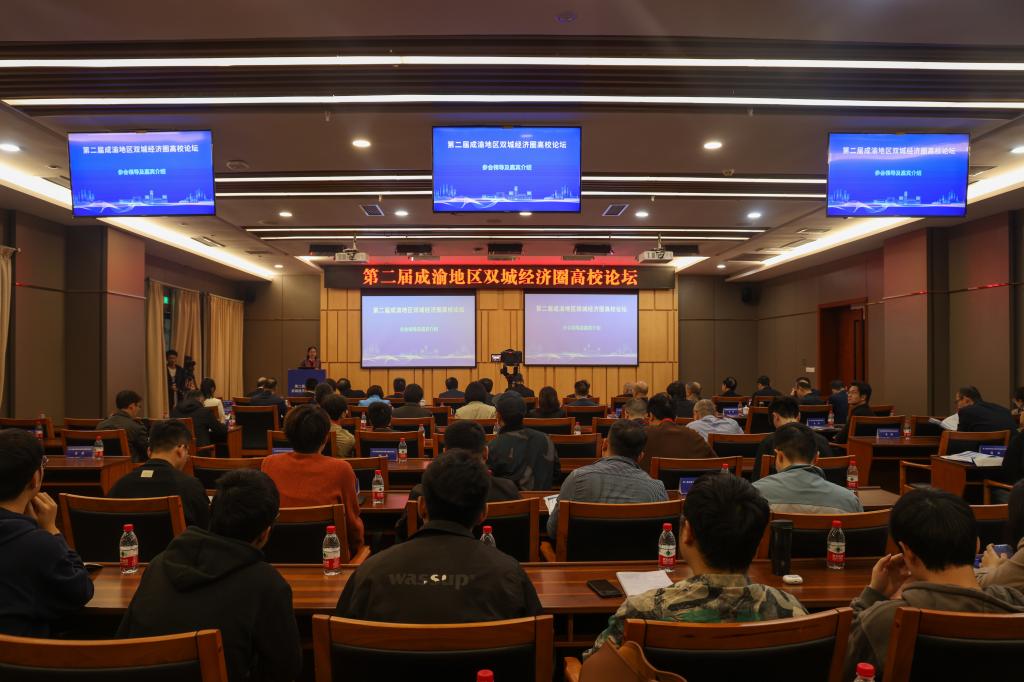 11月11日,由乐动网页版_乐动(中国)、西南财经大学主办,教育部人文社会科学重点研究基地长江上游经济研究中心、乐动网页版_乐动(中国)经济学院、西南财经大学经济学院、西南财经大学中国西部经济研究院、重庆市研究阐释习近平新时代中国特色社会主义思想研究基地——乐动网页版_乐动(中国)成渝地区双城经济圈研究基地承办的第二届成渝地区双城经济圈高校论坛在乐动网页版_乐动(中国)图书馆会议中心一会议室顺利举行。重庆市政协副主席、致公党中央常委、重庆市委会主委丁时勇,乐动网页版_乐动(中国)党委书记曾维伦教授出席并致辞。开幕式由乐动网页版_乐动(中国)党委常委、副校长柏群教授主持。