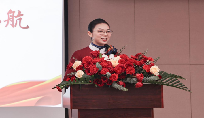 学生代表向照发言,她首先感谢学校和学院为大家提供了宝贵的学习机会,表示要努力学好专业知识,掌握扎实技能,今后为民航事业的发展贡献积极力量。随后,同学们结合专业所学,为大家带来了精彩的专业技能展示、航司制服秀和才艺表演。