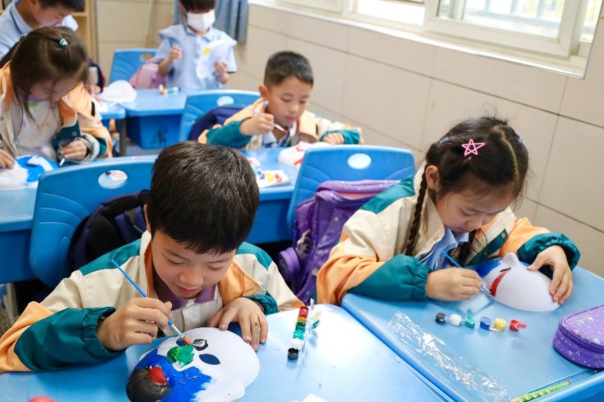 公开课上,非物质文化遗产研究会精心准备,聚焦川剧艺术特技之一——川剧变脸,设置科普小课堂和实践教学体验,让小学同学在特色课程中感受中国非物质文化遗产的魅力。活动伊始,研究会播放川剧变脸视频吸引同学们的注意,共同感受博大精深的川剧艺术。站点、踢腿、扇子一开一合、红脸一下变成白脸、扭头间拂帽甩带、白脸又变成黑脸......研究会成员细致讲解变脸步骤,科普川剧变脸的历史起源、类型、人物特点等内容,带领同学们深入理解川剧变脸这类中华传统文化的精神和内涵。在实践教学体验环节,研究会成员引导同学们阐述其对川剧变脸的见解,并指导同学们画下自己心中的川剧脸谱。一双双高举的小手,一支支神奇的画笔,一幅幅多彩的面具,我校学生社团努力推动非物质文化遗产进校园、进课程、进头脑。