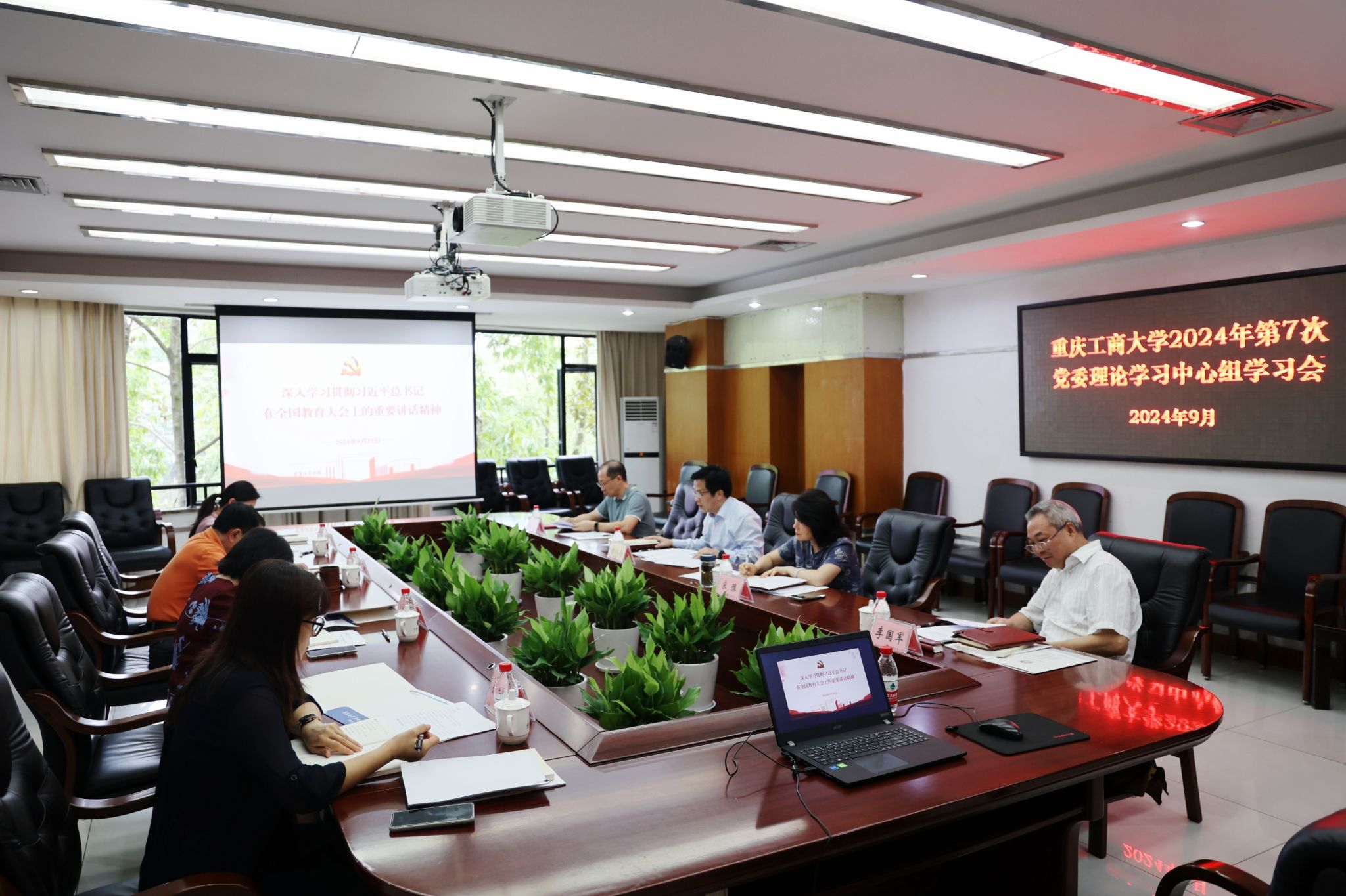 曾维伦指出,学习贯彻习近平总书记重要讲话和全国教育大会精神,是当前和今后一个时期重大的政治任务,要把思想和行动统一到习近平总书记重要讲话精神和党中央决策部署上来,务实功、出实招、求实效。一是加强组织领导,提高政治站位。要深刻领悟“两个确立”的决定性意义,增强“四个意识”、坚定“四个自信”、做到“两个维护”,牢记为党育人、为国育才的初心使命,着力培养德智体美劳全面发展的社会主义建设者和接班人。二是推动贯通学习,强化理论武装。把学习贯彻习近平总书记重要讲话和大会精神同党的二十届三中全会关于深化教育科技人才体制机制一体改革的战略部署贯通起来,同学习领会习近平同志《论教育》贯通起来,同习近平总书记视察重庆重要讲话重要指示精神贯通起来,同市委六届六次全会精神贯通起来,一体学习领会贯彻。三是做好宣传阐释,确保入脑入心。要用好校内融媒体矩阵,作好全方位、深层次、多角度宣传解读,深化对习近平总书记关于教育的重要论述的宣传宣讲。利用学校智库和科研平台作好研究阐释,力争形成一批高水平研究成果。四是对标贯彻习近平总书记重要讲话和大会精神,推动各项工作落地落实。要坚持不懈用习近平新时代中国特色社会主义思想铸魂育人,锻造好落实立德树人根本任务的关键课程。要立足国家和现代化新重庆建设急需,围绕特色优势改造升级传统学科专业,有组织培养商工融合高质量人才。要完善学校科技创新体制机制,扎实推动有组织科研,力争在承担国家级重大、重点项目上实现新突破。要主动服务国家重大战略和现代化新重庆建设,对标“33618”现代制造业集群体系、“416”科技创新布局需求,组织开展关键核心技术攻关和成果转化。围绕服务新时代西部大开发、长江经济带高质量发展、成渝地区双城经济圈建设,培育打造系列智库成果。要加强高素质专业化教师队伍建设,弘扬教育家精神,在深化教师评价改革、加大优秀教师及团队引育、优化教师队伍结构、提升教师队伍能力素质、强化贡献激励等方面持续发力,切实提升教师教书育人能力。要加强对外交流与合作,统筹“引进来”和“走出去”,不断提升学校在国内外影响力。