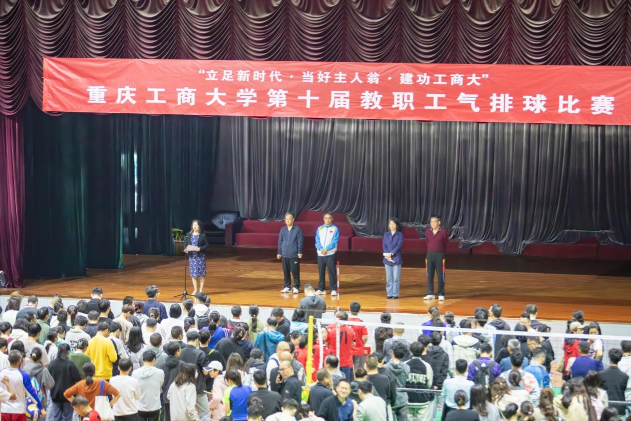 宋豫为比赛致辞。她代表学校党委和校工会向比赛顺利开幕表示热烈祝贺, 并向认真组织本次比赛的各二级工会、体育学院、教职工气排球协会及其工作人员表示衷心感谢,向将要挥洒汗水、奋力拼搏、争取佳绩的各个参赛队员们表示亲切问候。她指出,我校目前已经举办了10届气排球比赛,本届比赛一共有16个参赛队,参赛人员众多,气排球运动已经成为学校一道不可或缺的风景线,深受大家喜爱。学校专门成立了教职工气排球协会,并在2018年代表重庆市参加全国高校教职工气排球邀请赛,获得了女子第一名、男子第七名的好成绩,还荣获了该赛事优秀组织奖。她希望校工会多开展活动,搭建平台,创造机会,丰富教职工的精神文化生活,展现重工商大教职工积极向上、团结拼搏的精神风貌,汇聚推动学校改革发展的强大合力。她鼓励大家在赛场上发扬“勇于拼搏、敢于争先,友谊第一、比赛第二”的体育精神,尊重裁判、尊重对手、遵守规则,把握机会、全力以赴,赛出风格、赛出水平,切实达到“互相学习、团结协作、拼搏进取、共同提高”的目的。