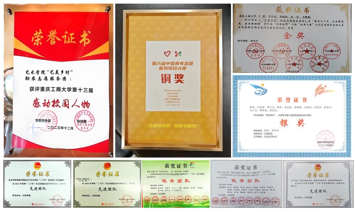学院通过多维度、立体化的实践方式,培养学生的家国情怀,着力锻造具有社会责任感与创新能力的应用型人才。一是构建“学科竞赛+专题研讨+实践活动”为一体的学生创新创业活动模式。学院严格落实学校2023年修订《普通全日制本科生学科竞赛管理办法》,在“以学促练、以练促赛、以赛促学”的创新探索中提高学生参与创新创业教育活动的积极性。近年来,学院完成30余项大赛的组织工作,获13届全国大学生广告艺术大赛(重庆赛区)优秀组织奖,2023年评为第十五届全国大学生广告艺术大赛全国优秀院校。学生在“互联网+”“挑战杯”“大广赛”等各类赛事中获得省部级及以上奖项600余项;二是积极展开校地合作赋能乡村振兴。将社会实践与思想引领、专业学习、职业规划、社会服务深度融合,形成“校地共建+特色共创”的实践育人模式。与合川区涞滩镇、忠县乌杨镇、石宝镇、磨子乡等地方政府开展以乡村振兴为目的的农特产品包装设计、传统文化创意设计、乡村景观再设计等助农项目,先后完成涞滩镇特产视觉形象与包装设计、铜罐驿镇英雄湾村文创设计、大观镇乡村景观设计、磨子乡廉政文化广场设计等项目并实际应用;三是加强家国情怀培育的社会实践,打造实践项目品牌。近年来,学院“艺美乡村”社会实践项目团队事迹获得中国共青团网、重庆日报、中国青年网、华龙网等多家主流媒体报道,获得社会各界广泛好评,并荣获第六届中国青年志愿服务项目大赛国赛铜奖、重庆市大学生志愿者暑期文化科技卫生“三下乡”社会实践优秀团队、重庆市第三届电商直播银奖以及乐动网页版_乐动(中国)第十三届“感动校园人物”(团队)等相关荣誉奖项。
