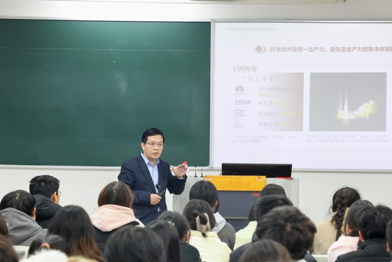 12月4日下午,学校党委书记曾维伦走进慧智楼90206教室,为经济学院2023级贸易经济一、二班同学们讲授“毛泽东思想和中国特色社会主义理论体系概论”课。