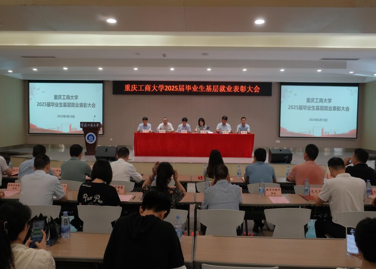 6月18日,学校在学生事务中心B101报告厅召开2025届毕业生基层就业表彰大会。市教委学生处副处长严平,团市委志愿服务中心党支部副书记贺伟,校党委书记曾维伦,党委副书记宋豫,党委常委、副校长李国军、杨柏出席会议。会议由杨柏主持。