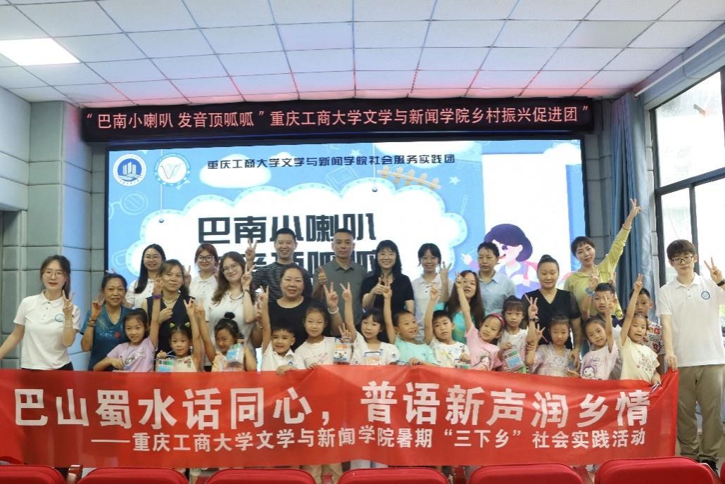 7月9日,文学与新闻学院暑期“三下乡”乡村振兴促进团来到巴南区木洞镇,开展推普助力乡村振兴实践活动。实践团深入木洞镇,通过网上查阅资料、走访当地街道工作人员等方式调研木洞儿童语言教育现状,发现部分儿童因方言习惯导致普通话发音不标准等问题。结合调研结果,团队精心设计拼音游戏、绕口令接龙、绘本朗读等互动课程,以寓教于乐的教学模式激发儿童的学习兴趣。活动中,学校留学生参与教学,并享自己学习汉语的经历,带领孩子们唱山歌、学舞蹈,将课堂气氛推向高潮。实践团成员通过富有趣味的教学方式帮助木洞镇的孩子们“正音”,深入感受普通话独一无二的魅力。实践团以语言为媒,为乡村振兴注入源源不断的文化动力。