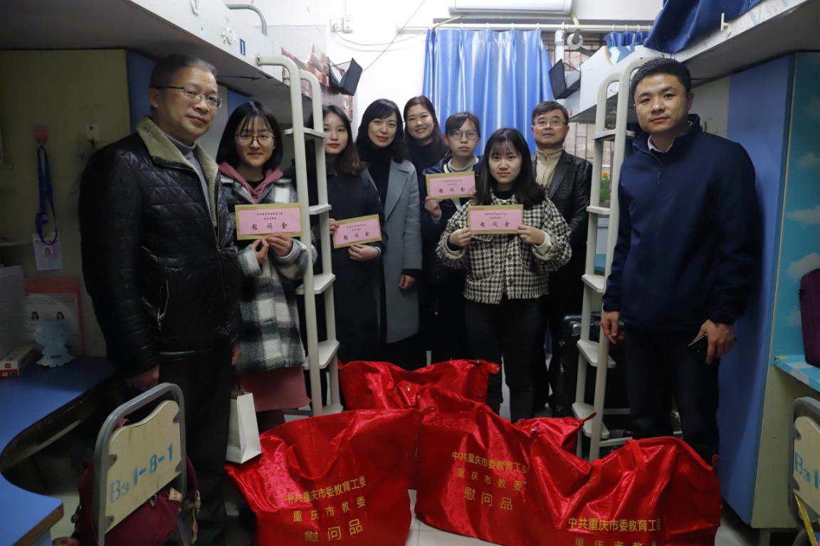 江燕副处长一行向我校部分留校学生赠送了慰问金及新春大礼包等慰问品并与大家合影留念。我校学生处相关负责同志陪同看望。