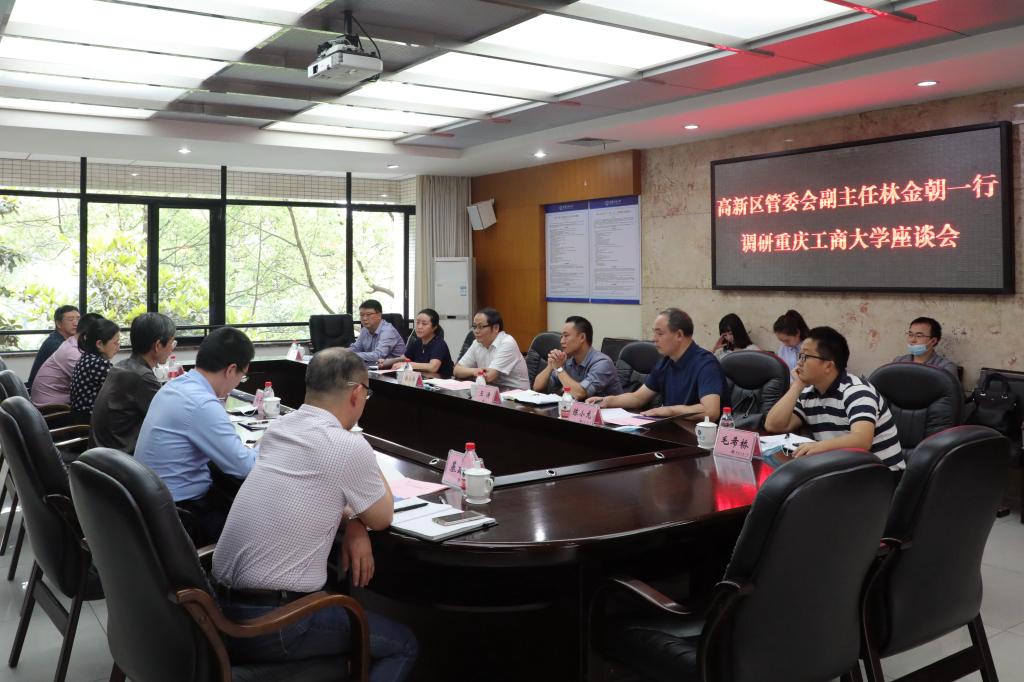 5月26日下午,重庆市高新区管委会副主任林金朝和重庆市教委高教处、高新区有关部门领导一行到我校调研。校长孙芳城、副校长柏群、校长助理谭松涛,发展规划处、基建处、科技处和部分学院、科研平台负责人参加了此次调研交流会,会议由柏群主持。