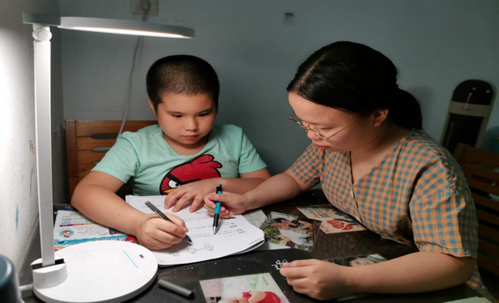 王清晓同学认真辅导“小奥特曼”的学习