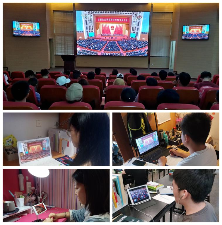 在表彰大会的直播过程中,大家聚精会神,怀着无比激动和崇敬的心情,认真观看了习近平总书记向国家勋章和国家荣誉称号获得者颁授勋章奖章,以及大会对全国抗击新冠肺炎疫情先进个人、先进集体,全国优秀共产党员、全国先进基层党组织进行表彰的重要时刻,并认真聆听了习近平总书记在全国抗击新冠肺炎疫情表彰大会上发表的重要讲话。学校多个收听收看会场不时响起一阵阵热烈的掌声。