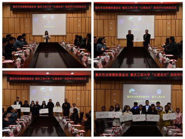 为进一步扩大对外交流合作,发扬与传承法律援助公益精神,资助家庭经济困难的法学学子完成学业,12月29日,我校与重庆市法律援助基金会共同打造的“让爱发光”奖助学计划资助仪式于南岸校区图书馆第五会议室隆重举行。重庆市法律援助基金会理事长张立维、副理事长吕文建、监事长杨兴礼、秘书长关松安、副秘书长龚敏,我校副校长赵骅、国内合作发展处处长冯吉光、党委学工部副部长陈亚惠、法学与社会学学院班子成员、教师代表等出席了仪式。颁奖仪式由法学与社会学学院院长黄文主持。