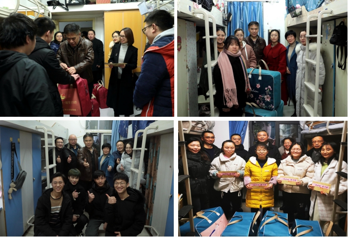 12月31日下午,校党委书记李志雄、副书记宋豫,副校长李国军在党政办,党委学生工作部、研工部,校团委及相关学院负责人的陪同下,在南岸校区、兰花湖片区和江北校区深入学生寝室,看望慰问部分家庭经济困难学生,并为他们送去了棉被和慰问金,在新年来临之际表达学校的关怀和祝福。