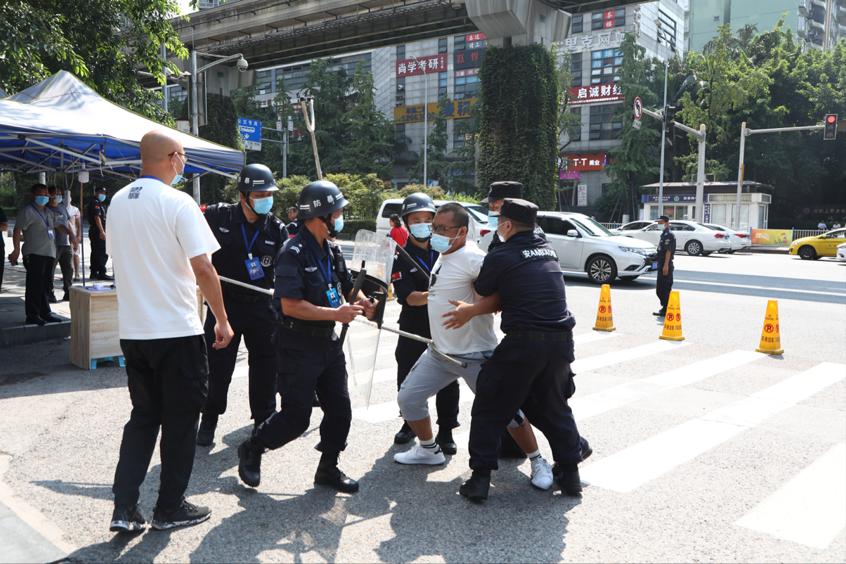 为科学应对疫情,检验学校现场处置能力、组织协调能力,确保2021年秋季学期顺利开学,根据市教委和学校防控办的要求,我校于8月30日下午在南岸校区一号门举行防恐防暴暨秋季学期开学疫情防控应急演练。党委副书记宋豫、副校长陈兴述、李国军,学府路社区党委书记张文婷,四公里派出所民警李明辉,我校有关职能部门负责人及相关单位工作人员参加了此次演练。