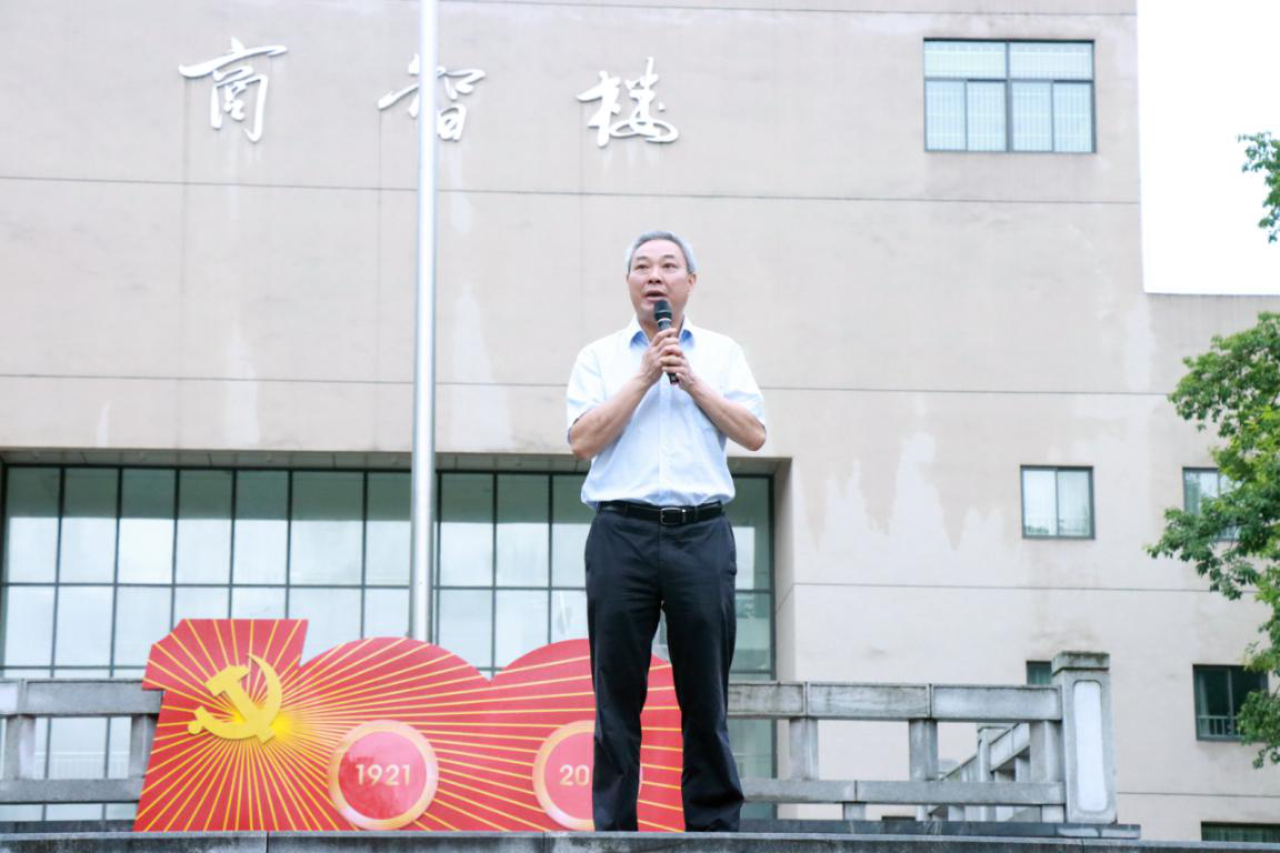 升旗仪式完毕后,学生代表、公共管理学院2019级学生任瑶以《你,为什么入党》为题发言。她用一个个鲜活的案例,讲述了入党的原因:为了主义、为了信仰、为了人民谋幸福、为了民族谋复兴。她谈到,无论路多远,无论路多难,为了理想信念,也要风雨兼程。