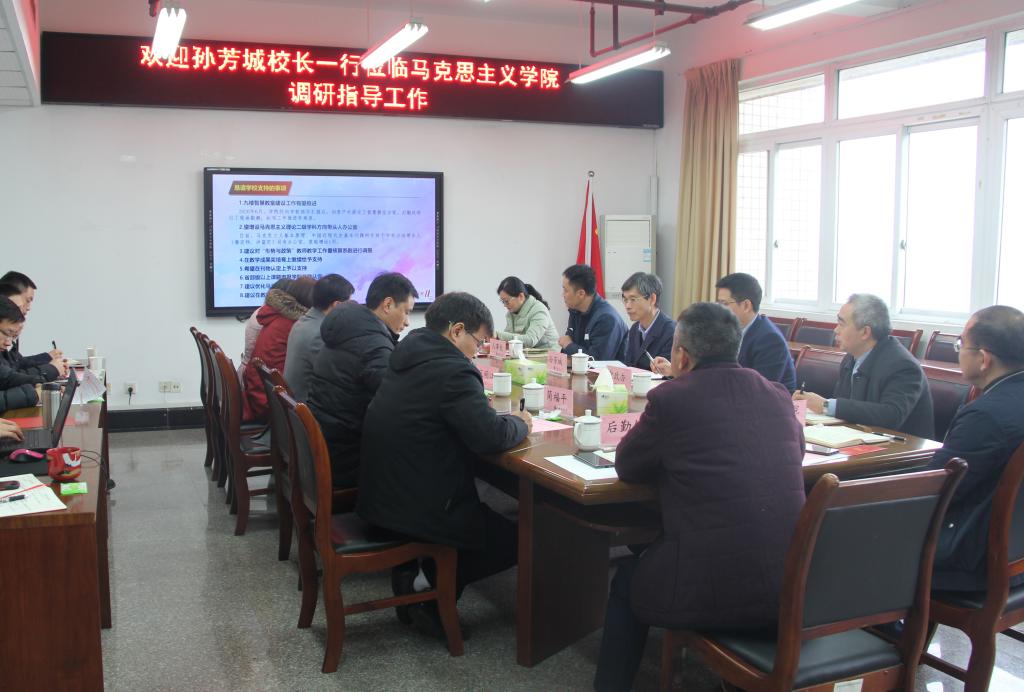 11月22日下午,校长孙芳城到马克思主义学院调研指导工作,在慧智楼91210会议室召开现场办公会。党政办、人事处、教务处、科研处、研究生院、后勤处等职能部门负责人陪同调研,马克思主义学院负责人、教研部主任等参加会议。会议由马克思主义学院党委书记宋明江主持。