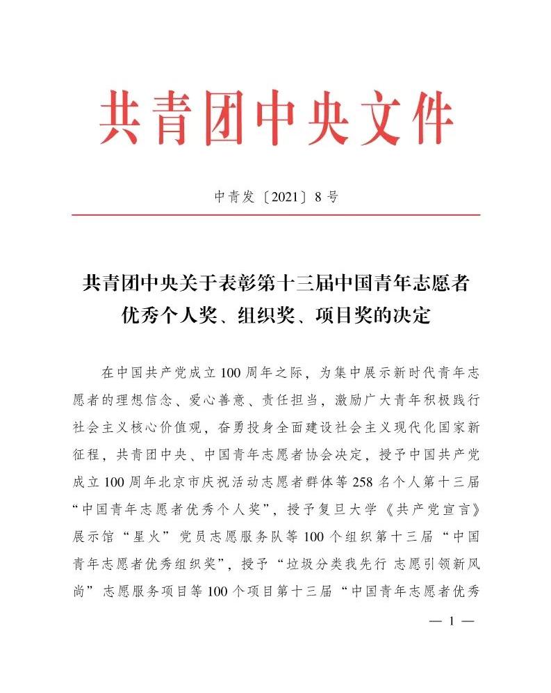 11月30日,共青团中央发布《关于第十三届中国青年志愿者优秀个人奖、组织奖、项目奖的决定》,乐动网页版_乐动(中国)青年志愿者协会获评第十三届“中国青年志愿者优秀组织奖”。该奖项是全国志愿服务类评选的最高荣誉,2021年全国共评选优秀组织奖100个,其中重庆市获奖3个,我校是唯一一个获奖高校。